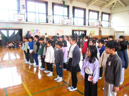 3月12日(水)に『6年生を送る会』を行いました。 1年生は6年生を送る言葉とともに、「いつまでも ともだち」の歌をプレゼントしました。