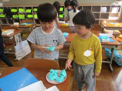今回は、へらで模様をつけたり、切ったりする技をつかいながら作りました。