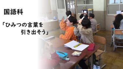 国語科 「ひみつの言葉を引き出そう」の学習で、言葉をカードに書き、交換し、カードを言葉を見ずに書かれている言葉を自然と口にするように会話をしました。