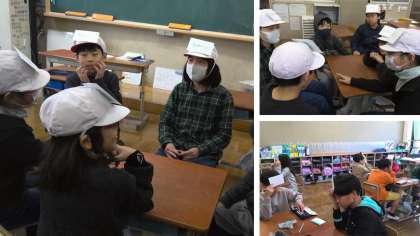 友達とひみつの言葉が自然と出るように話してみて、自分の持っているカードの言葉を推測しながら会話を続けました。