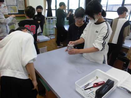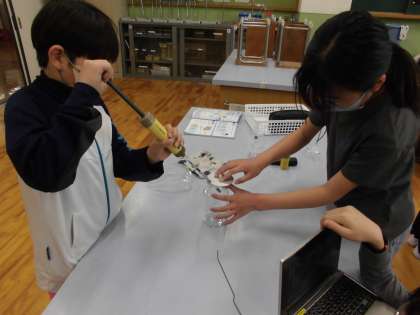 初めて使うということで,説明をしっかり聞いて,友だち同士間違っていないかよく確かめながら実験を進めていました。間違いそうになっても,各班よく声掛けをして進められていたので,失敗することなく実験を終えることができていました。