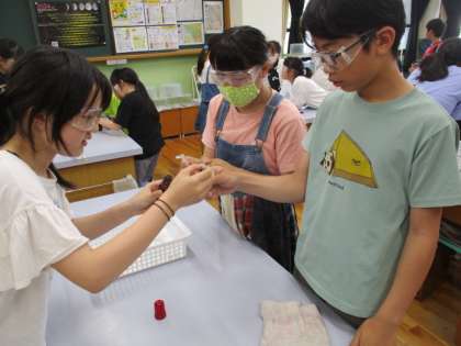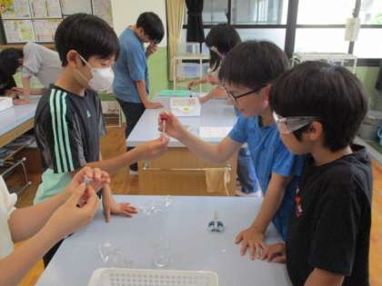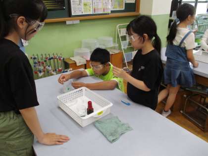 今日は、食べ物にふくまれるでんぷんは、口に食べ物を入れると出るだ液によってどうなるのかについて実験をして調べました。
