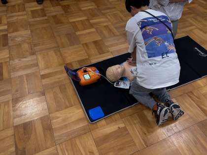 さて、今年度、小学校のAED一台が更新の時期となり、写真のタイプのものが職員室に設置されています。もう一台は、屋体棟1階ピロティ壁面(トイレ側)に設置されています。学校に来られた際は、AEDの設置場所を知っていただければと思います。