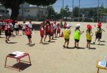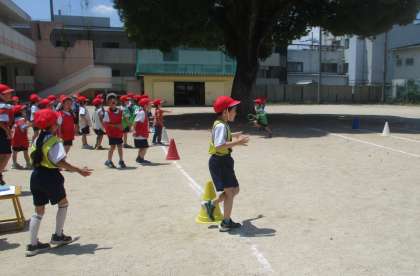 バトンわたしかたや、コーンの回り方、声のかけかたなど、最初にくらべてとても上達しました。
