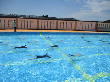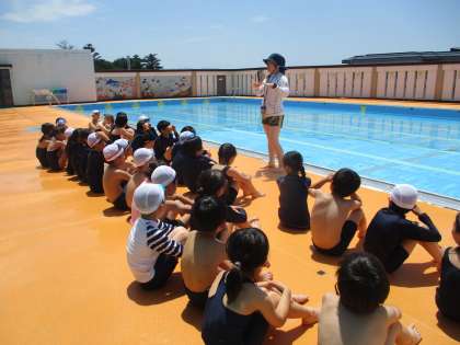 潜ったり浮いたり、「けのび」をしたりと水の中で様々な活動を行いました。暑い日だったこともあり、水がとても気持ちよく、楽しんで学習に取り組むことができました。