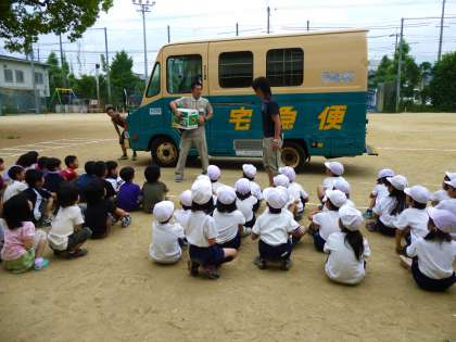 宅配業者の方に来ていただき,劇を見たりお話を聞いたりして,交通安全について楽しく学習しました。