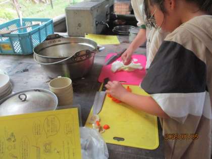 ネイチャービンゴを楽しんだ後、野外炊事をしました。メニューはカレーライス。
