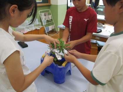 しかし、子ども達は「アルミニウムはくをかぶせておいたら葉が弱っていた。暑すぎたのではないか。」とか「ずっと晴れではなく曇っていたから日光が当たる時間が短かったかもしれない。」など、結果が出なかった原因について考察することができました。