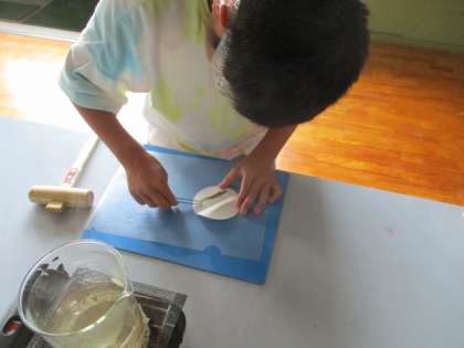 6年生の理科は「植物の葉に日光が当たると、でんぷんができるのだろうか。」という学習問題を解決するために実験を行いました。