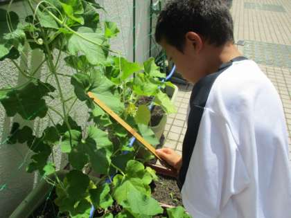 4年生の理科は「春にたねをまいた植物は、夏になり、どうなっているのだろうか。」という学習問題を解決するためにヒョウタンの観察を行いました。