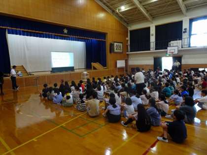 校長先生からのクイズに、楽しそうに答えていました。不思議に思ったこと、感じたことをもっと知る、そんなことにも取り組める夏休みです。8月26日(火)には、元気に戻ってきてくださいね。