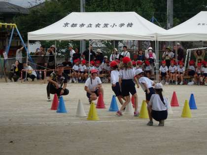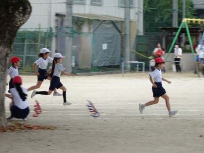 3年生によるバラエティ走です。ミニハードルも軽快にまたぎこしていきます。