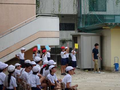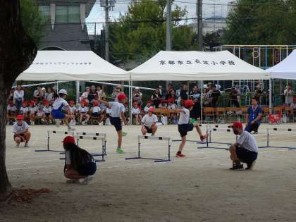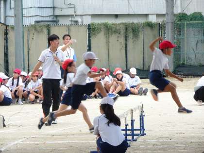 4年生のハードル走です。初めてのハードル走、リズムよくまたぎ越していきます。