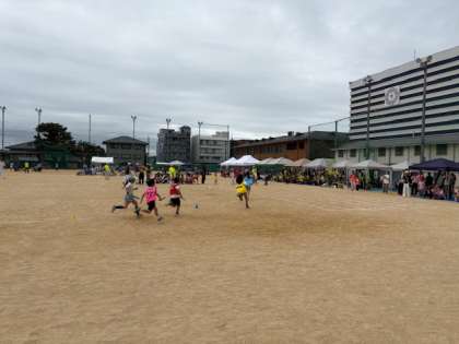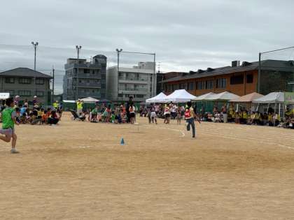 場所は、洛星中高のグランドでしたので、トラックも大きく一周の距離が長く感じられたと思います。でも、リレーで一生懸命バトンをつなぐ子どもたちの姿、一般の部の風を感じる大迫力の大人の走りにスポーツっていいなと思いました。