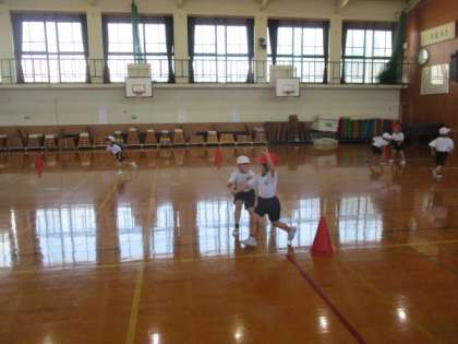 1年生の体育は『じんとりあそび』の学習を行っています。