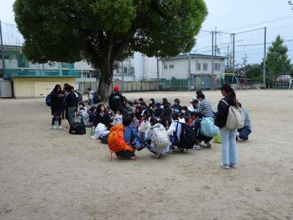 早朝ですが、楽しみにしていた修学旅行、子どもたちは元気に登校しました。