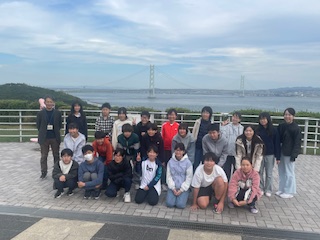 明石海峡大橋の前で記念撮影