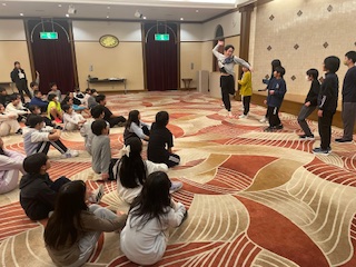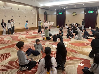 1.2組それぞれの係りで企画したダンスやクイズ、伝言ゲームなどをみんなで仲良く楽しみました。