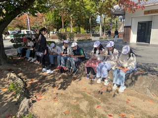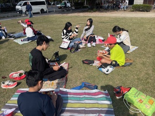 姫路城近くの公園でお弁当を食べました。