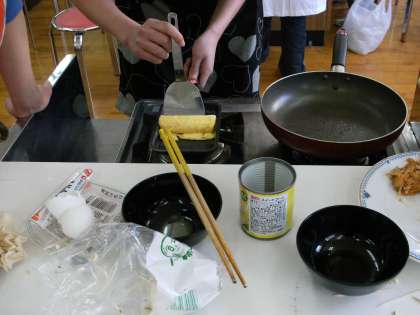 「お弁当づくりに挑戦」では,三品のおかずを栄養のバランスやいろどりを考えて班でメニューを決めました。その日の給食のごはんやおかずもいっしょに詰めてとってもステキなお弁当ができました。