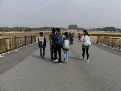 まずはじめに平城宮跡に行き,シアターでは奈良の都の様子の映像を見ました。