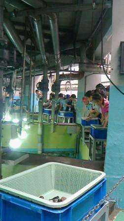 みさきの家をあとにして,マリンランドに向かいました。ふだんは見ることができない水族館の裏側を見せていただきました。