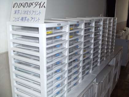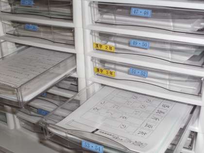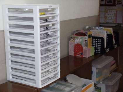 木曜日の「のびのびタイム」や朝学習で使用するプリントを,自分でも課題に応じたプリンを選択して自主的に取り組めるように,プリントや収納棚などの環境整備を進めています。今回,新しく購入した10段の収納ケースに,1年から3年までの漢字や言葉の学習プリントを整備しました。収納ケースは体育館棟と1年教室前に設置しました。プール棟2階のホールには,高学年向きを中心としたプリントコーナーを設置すべく,現在準備を進めているところです。今後,家庭での自主学習や学校での空き時間の活用につながっていくよう,子どもたちにも働きかけていきたいと考えています。