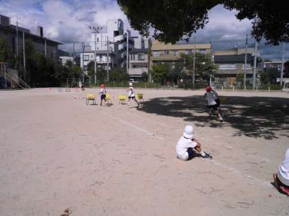 アイディア走では,コースの確認はもちろん,実際に小道具を使っての練習に励んでいます。ただ走るだけだと身軽でよかったのですが,1つ道具が増えただけでもあたふた。走るのが早いからといって1番にゴールできるとは限りません。誰もが1等賞をとりたくて,全力で頑張っています。
