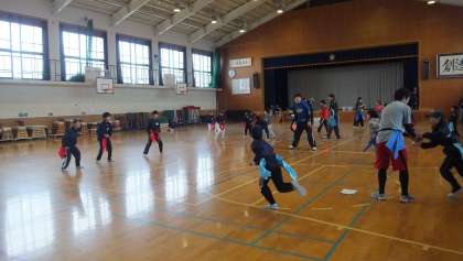 2月15日(土)に,体育館で,PTA主催の「アメフトをしよう」がありました。