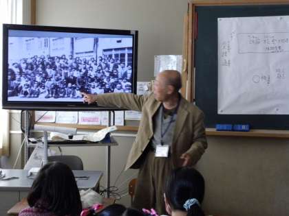 3月10日に地域の方にゲストティーチャーとして来ていただき,3年生の子ども達がお話を聞きました。昔の学校の様子や,伝統文化に対するおもいなどについて教えていただきました。