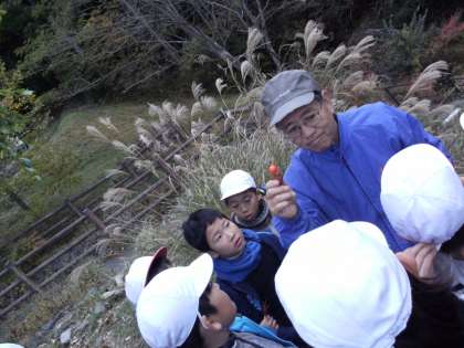 インストラクターの方に植物や生き物のことを実物を目の前にして、いろいろ教えていただきました。子どもたちからは、今まで見過ごしていたことが改めて見えるようになったと好評でした。ススキの草笛も大喜びでした。