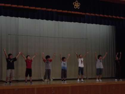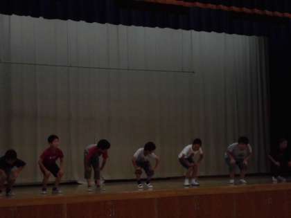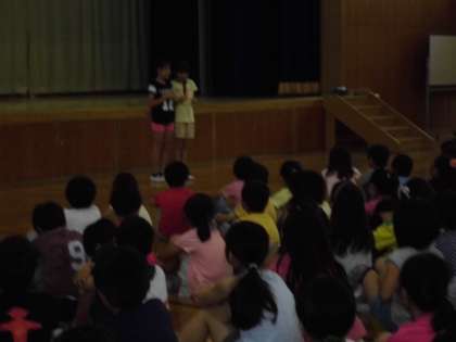 今日の児童集会は運動委員会と保健委員会が発表しました。運動委員会は,プール学習の前の準備運動のやり方をステージで紹介してくれました。とても楽しい準備運動です。保健委員会は,6月の歯磨き月間の取組について紹介していました。みんなしっかり話を聞いていました。