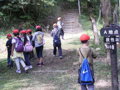 グループごとに浦山ラリーです。途中にカニを見つけたり、やまびこごっこをしたりと楽しくグループで行動していました。