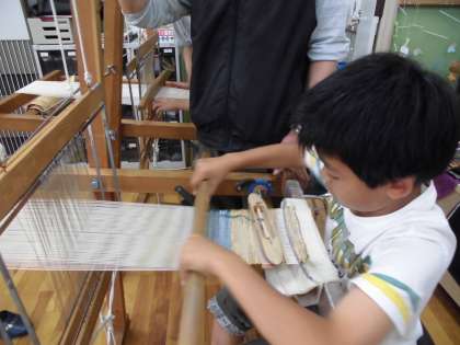19日(金)5年生は,京・ものづくり塾「和らいふ」の方々に来ていただいて,友禅染と西陣織の体験をしました。