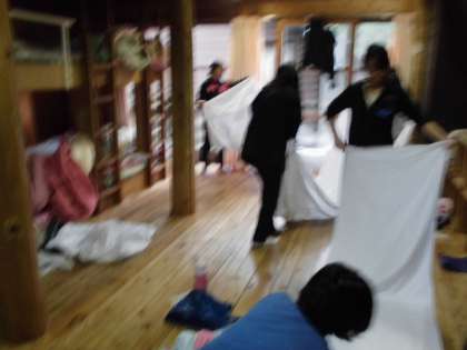朝6時に起床し,シーツたたみ・ふとんたたみ・荷物の整理・部屋の掃除など,みんなで協力して行いました。その後,朝の会をし,今日のテーマが「自立」であることを確認しました。7時45分から,山の家の最後の朝食をいただきました。全員食欲もあり,元気いっぱいです。
