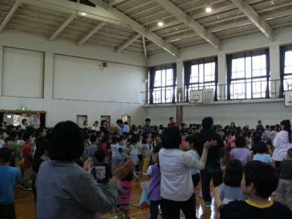 北下支部のみんなよろしく大会が本校で行われました。わかば学級は準備やはじめの言葉をがんばりました。前半はそれぞれの学校の仲間の紹介.後半は衣笠小全校との交流でした。学校と各学年の紹介をしたあとゲームをして楽しみました。