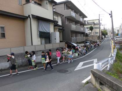 今日は社会科の学習で,校区の様子を調べるために校区探検に出かけました。