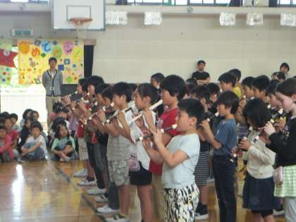 17日(水)に1年生を迎える会がありました。4年生は「はじめの一歩」という曲を歌とリコーダーでプレゼントしました。きれいな声で歌ったり,メロディーをリコーダーで演奏したりできました。