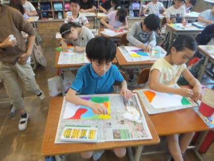 30分ほどの時間,とても集中してきれいに塗っていました。作品ができあがるのが楽しみです。