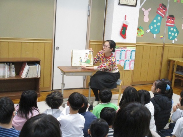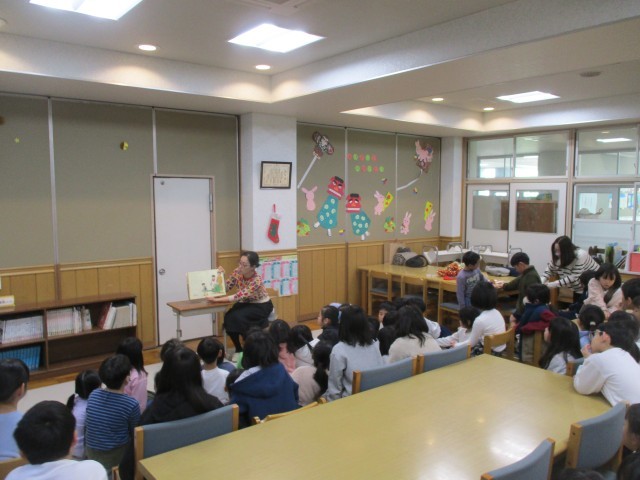 1月19日(月)の中間休み、ぽぽんたさんによる読み聞かせがありました。