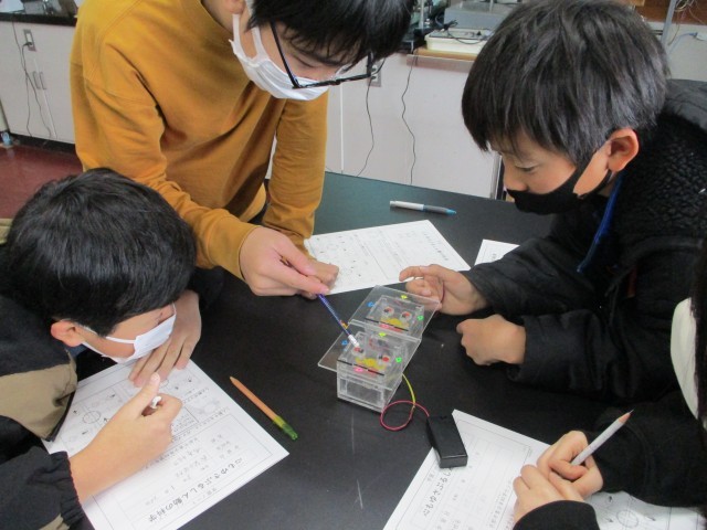 小学校ではできない実験に、とても興味津々でした。休み時間にも科学センター手作りの実験セットで楽しんでいました。これからも科学に興味をもって学習してもらえたらと思います。