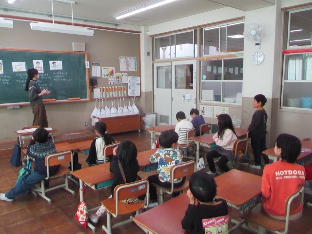 1組は1月28日(水)、2組は2月4日(水)に栄養教諭の先生が食の学習をしてくれました。