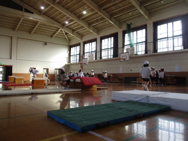 今日は学年でやってみました。少し勇気をだして、「えいっと!」思いっきりふみきり台を踏み込んで跳ぶと、