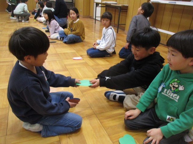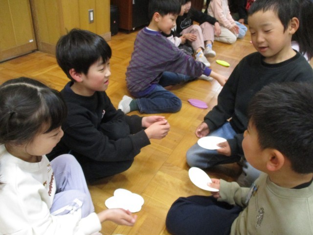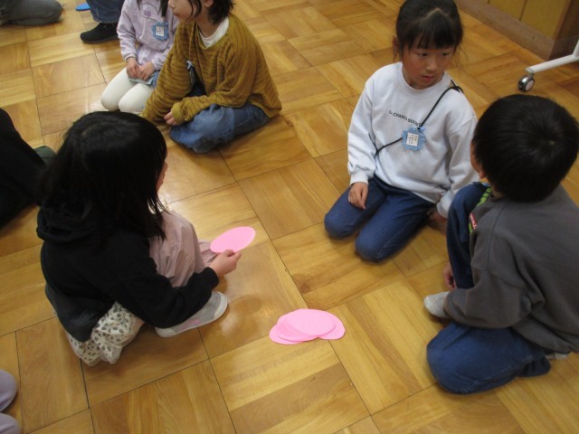 その学習を生かし、今日は「ちょうちょの羽屋さん」と「お客さん」に分かれて、子どもたち同士での英語のやり取りにチャレンジ!