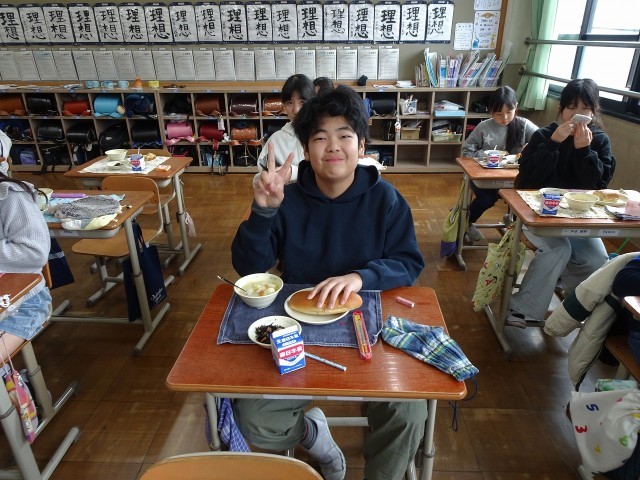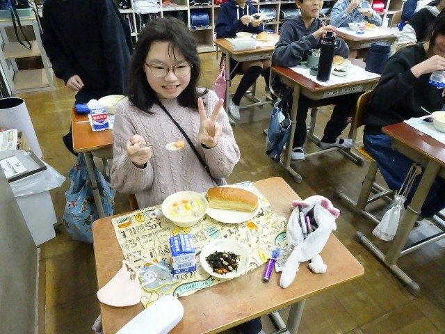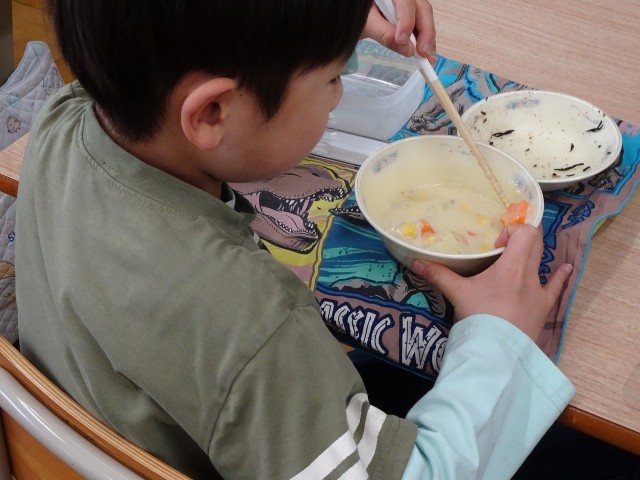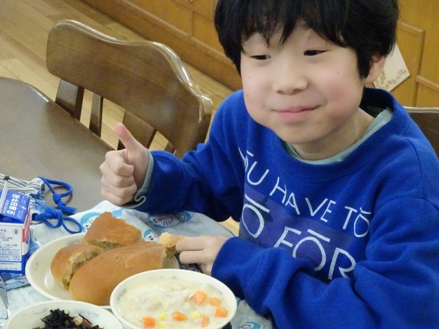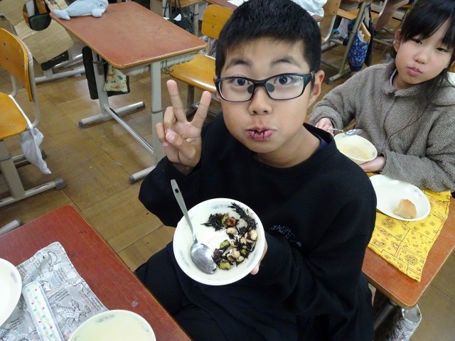 給食で笑顔