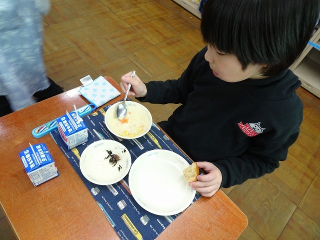 もちろん星形が入っていない子もいましたが、おいしい給食でにこにこの笑顔でした。