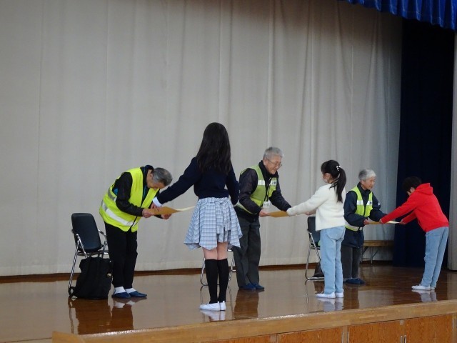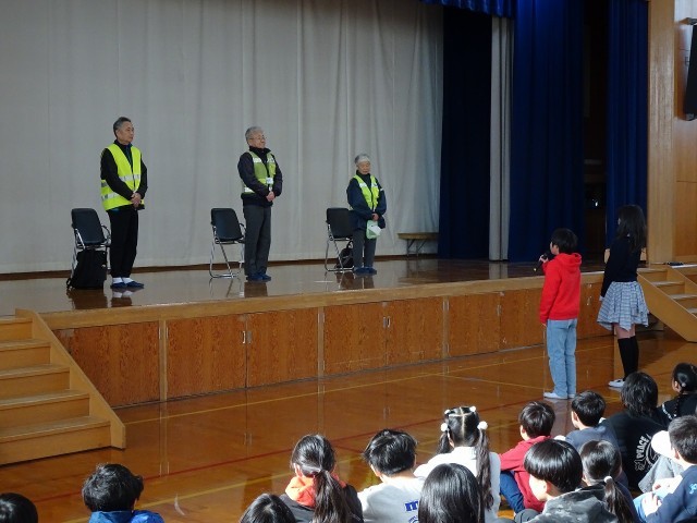 児童会の司会で、みまもり隊の方からのお話を聞いたり、登下校時に元気なあいさつをすることが感謝の気持ちを伝えることになることを伺ったりして、日々のあいさつをしっかりとしていこうという気持ちになりました。