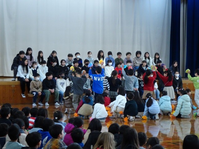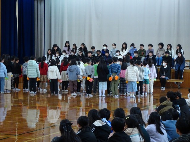 3月10日(火)に行われた6年生を送る会。2年生から、「春が来た」の歌やメッセージ!