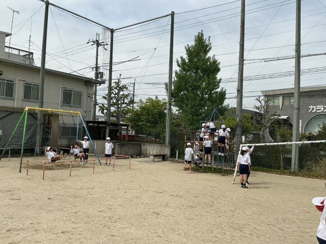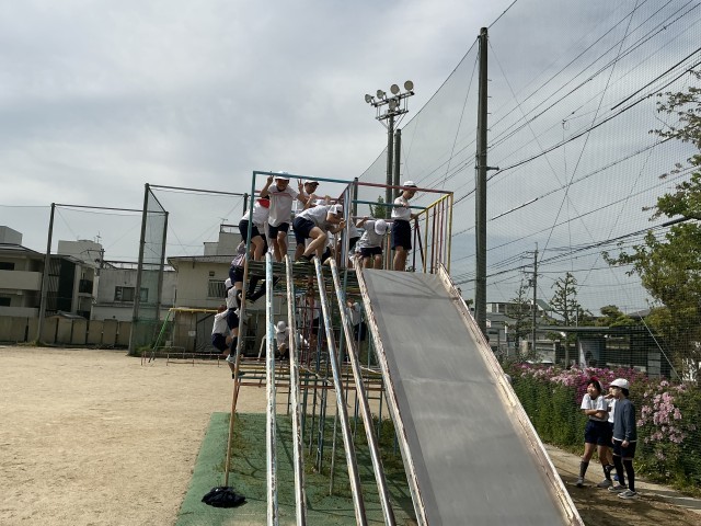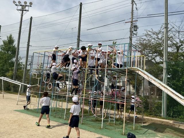 体育科の学習で、総合遊具の使い方を再確認しました。