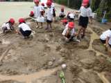 図画工作科の「すなとつちとなかよし」の学習で,校庭の砂場で活動をしました。 土の...